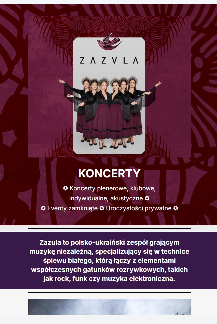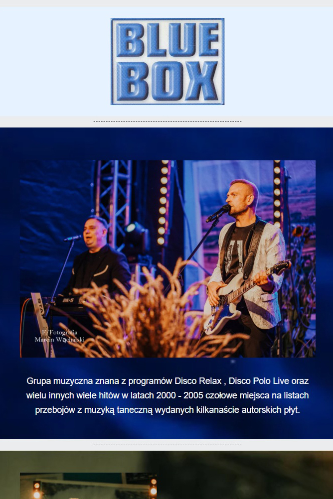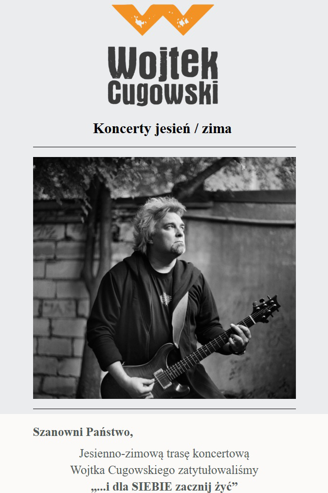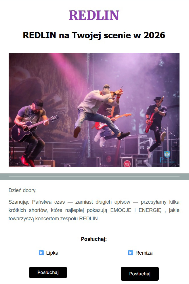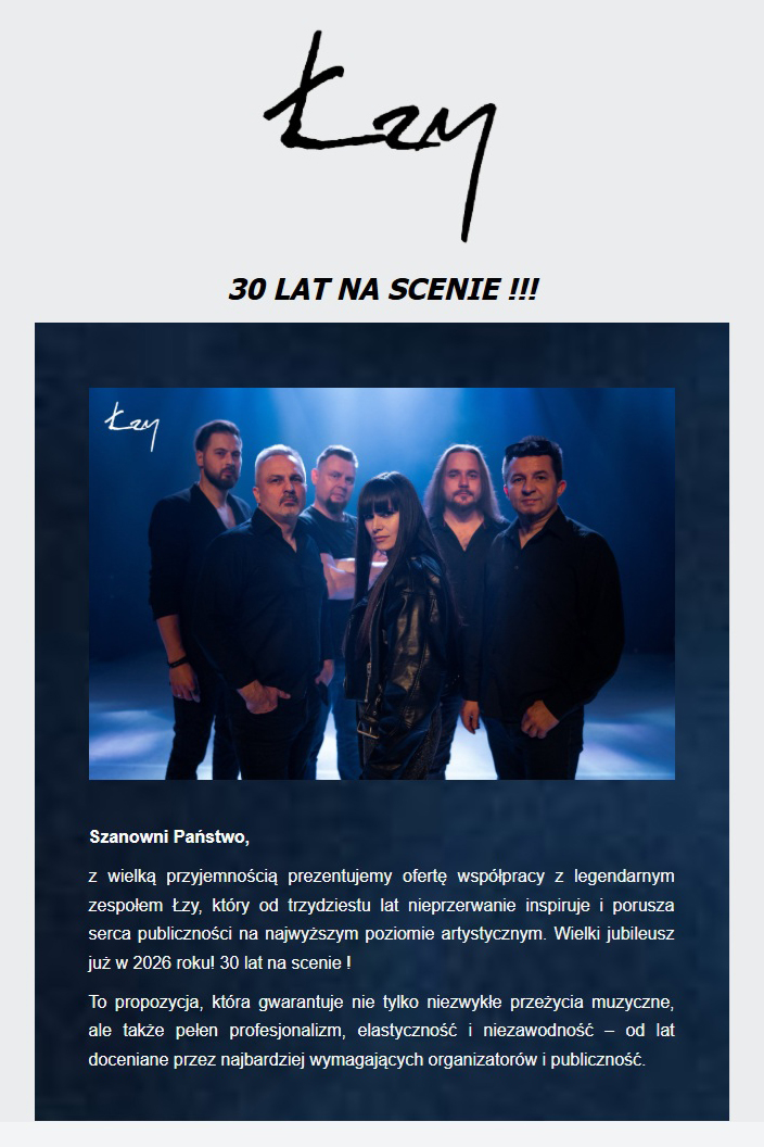 po krótkiej przerwie wznawiamy działalność naszego internetowego Katalogu Artystów. Jest on zbiorem reklam Wykonawców, którzy w danym miesiącu korzystają z naszej usługi newsletterów informacyjnych oraz innych świeżych, aktualnych ofert.