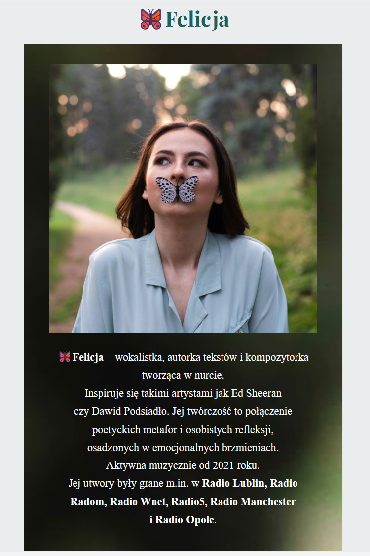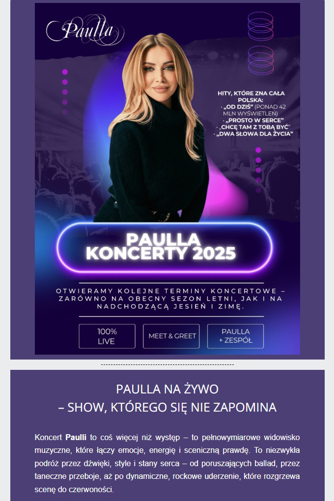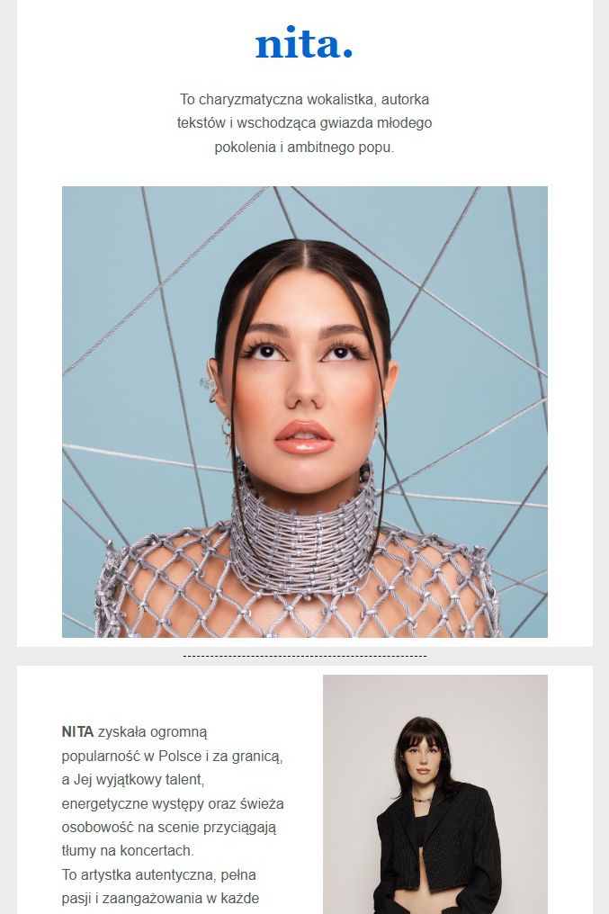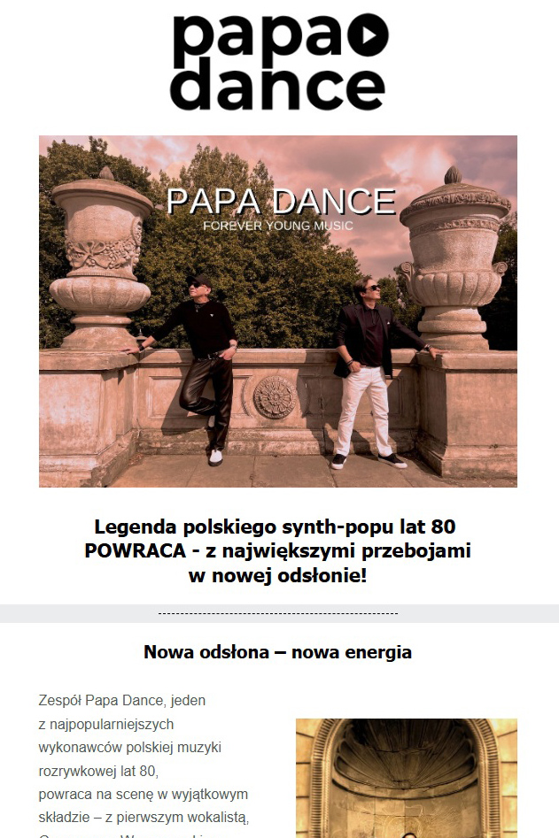 po krótkiej przerwie wznawiamy działalność naszego internetowego Katalogu Artystów. Jest on zbiorem reklam Wykonawców, którzy w danym miesiącu korzystają z naszej usługi newsletterów informacyjnych oraz innych świeżych, aktualnych ofert.